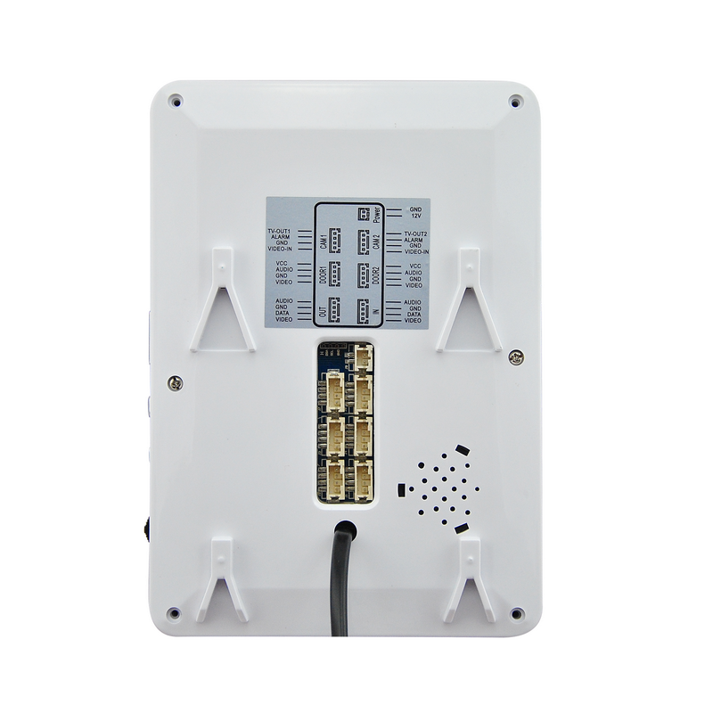 Поддерживает подключение двух вызывных видеопанелей и двух видеокамер. Подключение линии связи с панелью стандартное 4-х проводное.Поддерживаемые видеоформаты: CVBS (PAL/NTSC).